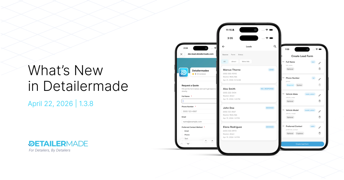 We're excited to introduce Leads — a complete lead capture and management system built right into Detailermade. Create custom forms, share a link, and track every potential customer from first contact to booked job.
